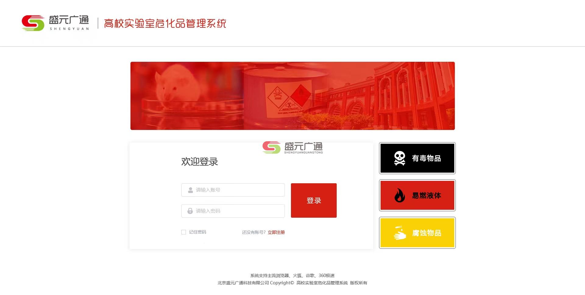 盛元广通高校及科研院所实验室危化品安全管理系统是一个用于管理实验室中危险化学品的安全使用和存储的系统。这样的系统通常由软件和一系列管理措施组成,旨在确保实验室中危化品的合理使用,减少潜在的安全风险,保护实验室工作人员和环境的安全。